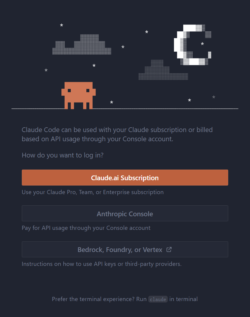 解决方法是在系统用户的此目录下创建文件 .claude/config.json,然后配置随意的primaryApiKey 内容并重启 VSCode 即可.