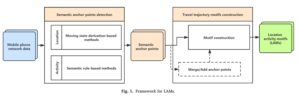 因此,我们开发了一个有效的框架,从海量的手机网络数据中提取基于位置活动基元 ( Location Activity Motifs,LAMs ) 的个体日常活动-出行模式,这有利于将日常活动-出行行为中的位置、活动和出行结合起来。